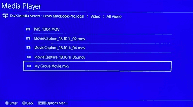5. On the PS4 open the Media Player and select the DivX Media server from the list of available media servers.